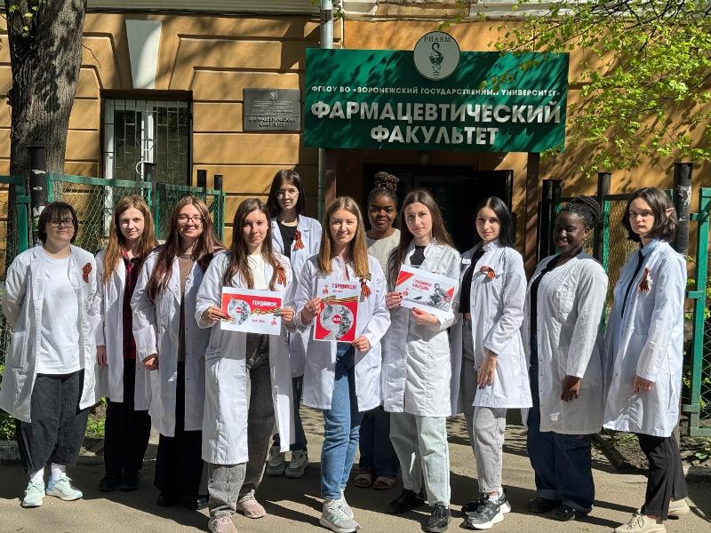 С 21 по 28 апреля на фармацевтическом факультете ВГУ впервые прошла акция «Георгиевская лента», посвящённая 80-летию Победы в Великой Отечественной войне, где студенты-волонтёры факультета раздавали Георгиевские ленты.