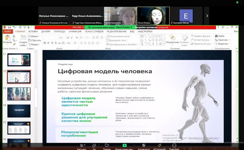 - Обеспечение возможности продления и поддержания трудоспособности. Доцент кафедры медицинской биологии, молекулярной и клеточной биологии ВГУ Татьяна Рахманова акцентировала внимание на реалиях смягчения предрасположенности к заболеваниям, улучшению памяти, возвращению к труду работников с ограниченными возможностями, биоимплантах, экзоскелетах, «второй паре рук», трансгуманизме бесшовных сред, микрочипах для волонтёров.