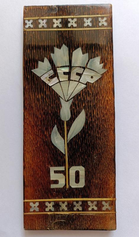 Особое место на выставке занимает уникальное декоративное изделие – гвоздика, инкрустированная перламутром. Её изготовили в 1967 году на Павловском промкомбинате к 50-летию СССР. Этот редкий и ценный предмет передал в дар музею доцент кафедры ботаники и микологии ВГУ Владимир Викторович Негробов, сын В.П. Негробова.