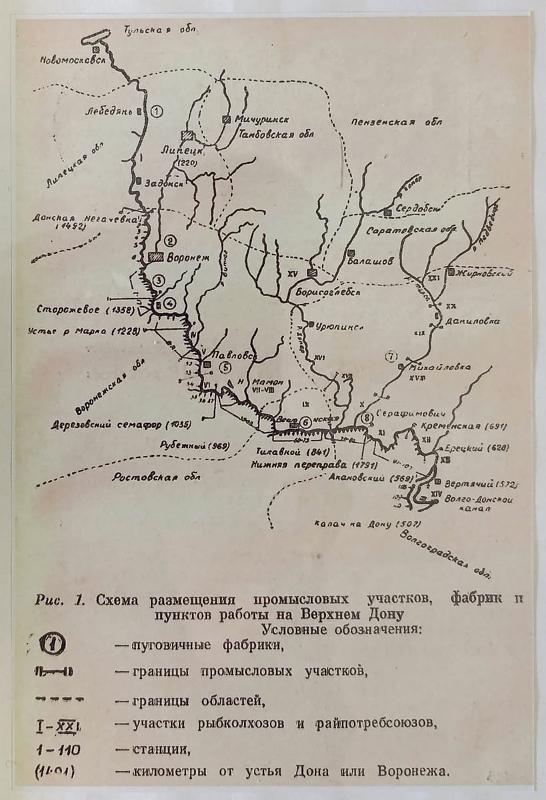 Выставку дополняет карта, показывающая, где именно в регионе добывали моллюсков и как было организовано производство. Эта карта является репринтом из статьи 1965 года, написанной воронежскими зоологами В.П. Негробовым и А.Н. Асташкиной.