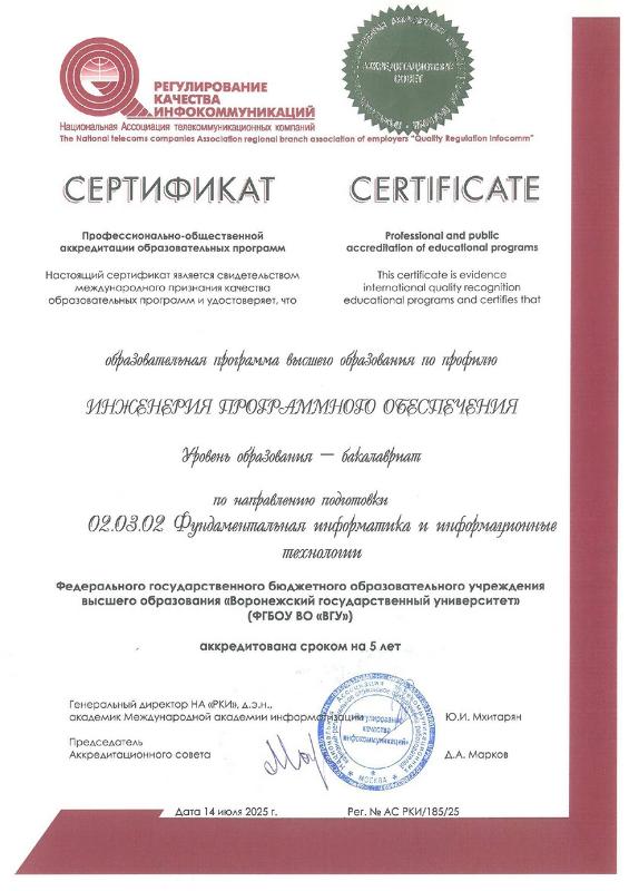 - Инженерия программного обеспечения (направление подготовки 02.03.02 Фундаментальная информатика и информационные технологии, ПММ);