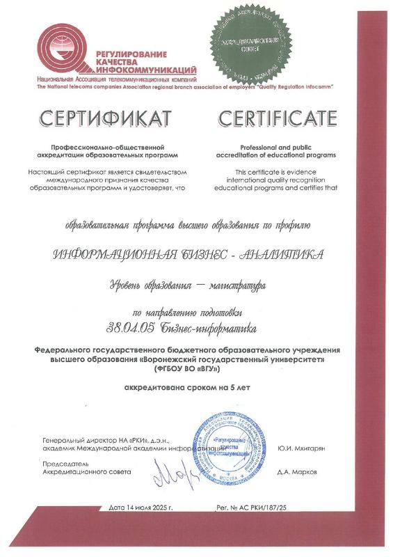 Аккредитацию проводила Национальная Ассоциация телекоммуникационных компаний «Регулирование качества инфокоммуникаций». Профессионально-общественная аккредитация образовательных программ является одним из новых направлений независимой оценки качества образования и представляет собой признание качества и уровня подготовки выпускников, отвечающих требованиям профессиональных стандартов, рынка труда к специалистам, рабочим и служащим соответствующего профиля.