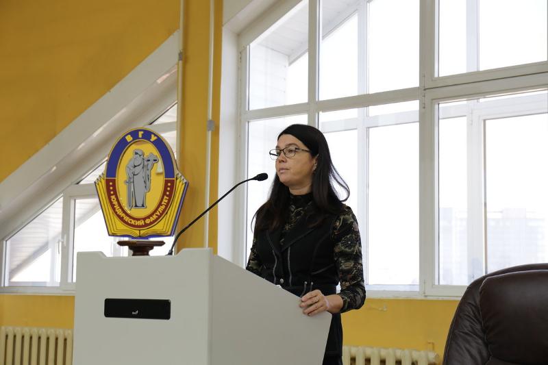 Платформой замечательного выступления послужил многолетний труд Елены Викторовны по исследованию истории образования Воронежского государственного университета и его классического факультета – юридического.