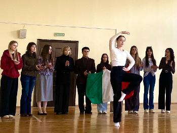 В рамках неофициальной части мероприятия первокурсники с удовольствием продемонстрировали свой творческий азарт в форматах квеста, сценических скетчей и исполнения песенных и танцевальных композиций. Их поддержал доцент кафедры перевода и профессиональной коммуникации, Дмитрий Олегович Курилов: он представил сонеты У. Шекспира в авторской музыкальной обработке и в авторском переводе.
