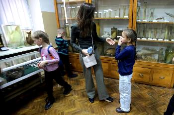 Затем состоялась экскурсия по музеям медико-биологического факультета. Ребята с огромным интересом рассматривали рыб, экзотических бабочек, ракушки. Как всегда, восторг вызвали экспонаты Зоологического музея. Дети узнали множество интересных фактов о живой природе, познакомились со слоном, который жил в XIX веке и даже с летучей лисой.