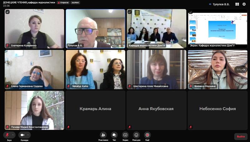 Декан факультета журналистики Владимир Васильевич Тулупов, входящий в программный комитет Международной научной конференции «Донецкие чтения», выступил с докладом «Патриотизм как ценностная установка журналиста». Эта юбилейная конференция ДонГУ была посвящена 60-летию создания Донецкого научного центра «Донецкие чтения: образование, наука, инновации, культура и вызовы современности».