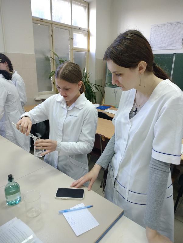 В рамках университетского проекта «ВГУ-LIVE!» на химическом факультете за партами и лабораторными столами вместе со студентами 1 и 2-го курсов постигали основы наук школьники из пятнадцати школ Воронежа и области. Они посетили лекции, практические занятия и побывали на лабораторных практикумах по дисциплинам «Общая и неорганическая химия», «Неорганическая химия», «Основы техники лабораторного химического эксперимента», «Физическая химия».