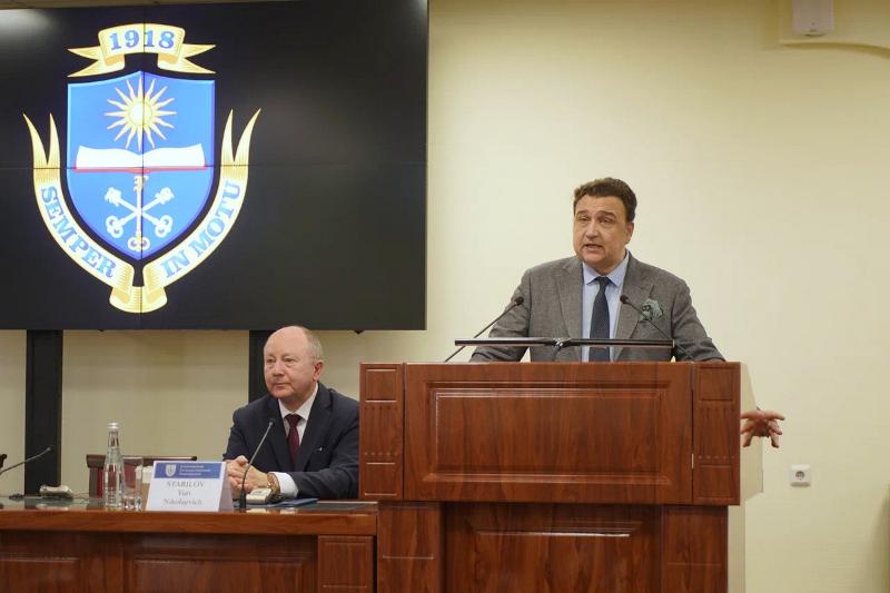Модератором встречи выступила декан факультета романо-германской филологии, профессор Ольга Олеговна Борискина, отметив, что в условиях кризиса коммуникации и разности толкования фундаментальных понятий именно на стыке языков и культур рождается пространство для подлинного диалога.