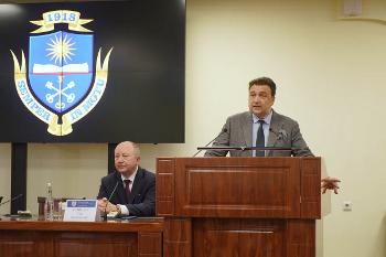 С приветственным словом к участникам обратился и.о. ректора Воронежского государственного университета, профессор Юрий Николаевич Старилов, подчеркнув актуальность темы и важность защиты принципов уважения суверенитета и невмешательства во внутренние дела, заложенных в Уставе ООН.