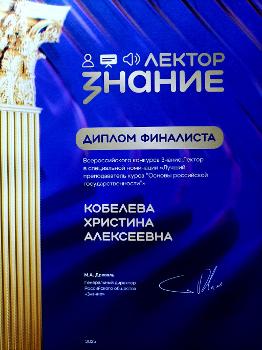 В специальной номинации конкурса «Лучший преподаватель дисциплины „Основы российской государственности“» исторический факультет ВГУ представляла старший преподаватель кафедры социологии и политологии, кандидат политических наук Христина Алексеевна Кобелева.