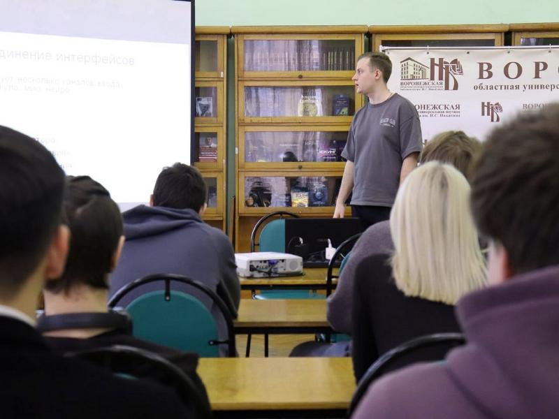 В рамках III Всероссийской библиотечной акции «Молодёжная неделя цифровых технологий» в Воронежской областной универсальной научной библиотеке имени И.С. Никитина прошла встреча на тему «Перспективные интерфейсы – человек-компьютер». В мероприятии принял участие Никита Дмитриевич Солопанов, инженер лаборатории медицинской кибернетики Воронежского государственного университета.
