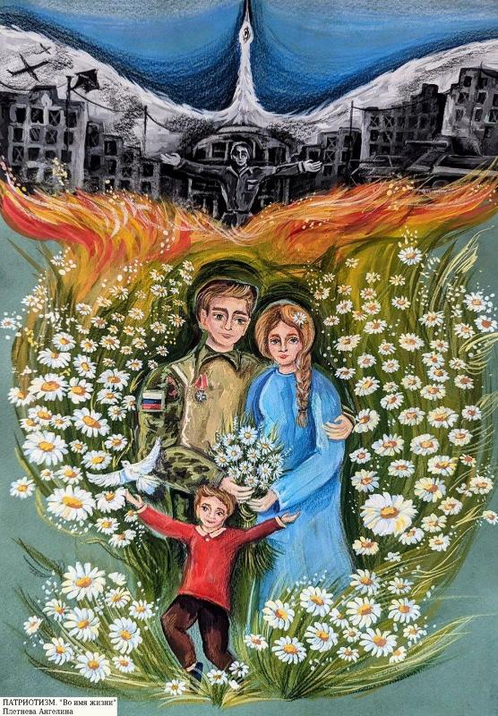 Свою творческую работу Ангелина посвятила бессмертному подвигу героев Великой Отечественной войны и мужеству воинов специальной военной операции: «Наши прадеды ценой своих жизней приблизили заветный День Победы, и ныне современные защитники страны во имя жизни делают всё возможное и невозможное, чтобы повторить этот великий день вновь. Этот год — особенный, знаменующий 80-летие Великой Победы. Я всем сердцем верю, что этот год станет вдвойне победным. Герои нашего времени подарят нашей Родине долгожданную Победу! Солдаты вернутся домой к своим родным, и будет мир во имя жизни... во имя памяти...»