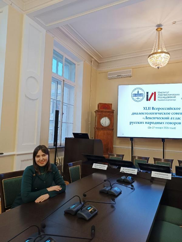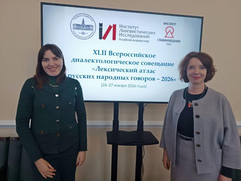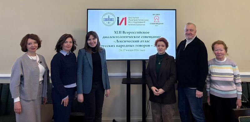 Заведующий кафедрой славянской филологии, доцент Марина Владимировна Панова, старший преподаватель кафедры славянской филологии Дарья Николаевна Гальцова и доцент кафедры издательского дела Сергей Александрович Попов приняли участие в работе XLII Всероссийского диалектологического совещания «Лексический атлас русских народных говоров – 2026», которое проводилось Институтом лингвистических исследований РАН и проходило в Малом зале Санкт-Петербургского отделения Академии наук.