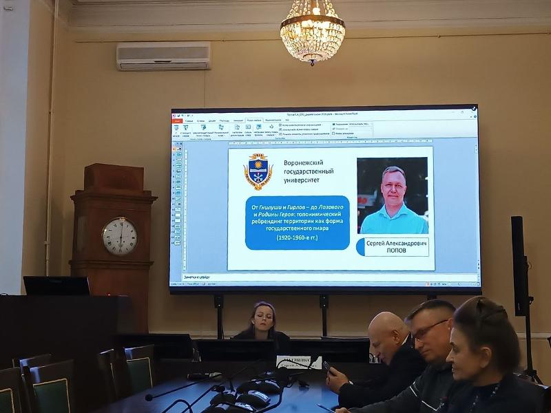 Сергей Александрович принял дистанционное участие в конференции, выступил с докладом о топонимическом ребрендинге.