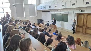 На базе экономического факультета ВГУ прошла встреча специалиста Координационного центра ВГУ по направлению «Открытый диалог» Виктора Алексеевича Сливкина со студентами экономического факультета и факультета географии, геоэкологии и туризма на тему «Противодействие деятельности украинских специальных служб в студенческой, молодёжной среде».