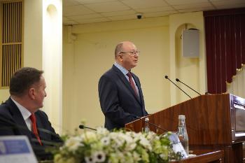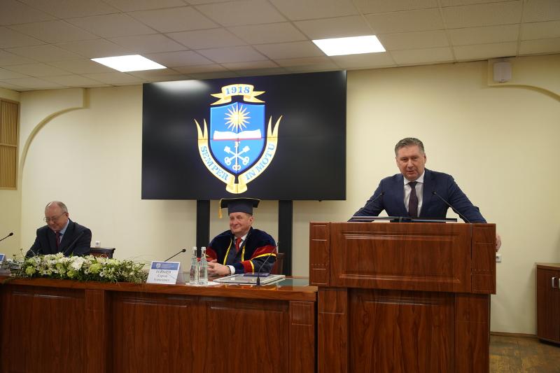 Нового Почетного доктора Воронежского государственного университета собравшимся представил и.о. ректора ВГУ, профессор Юрий Николаевич Старилов.