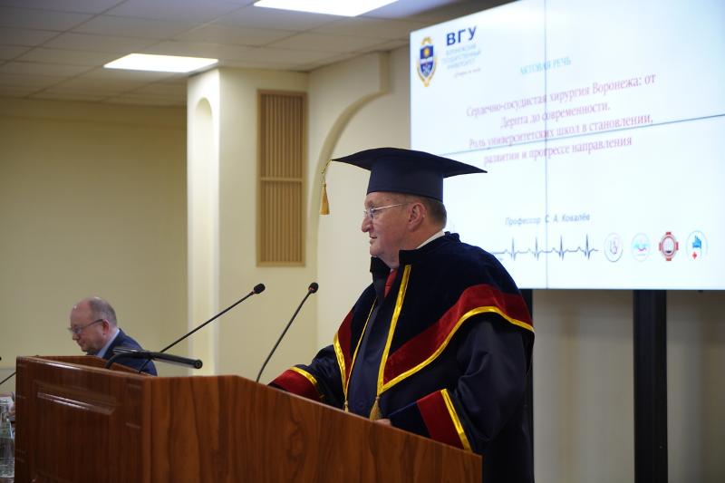 Кульминацией мероприятия стала актовая лекция нового Почетного доктора ВГУ. Сергей Алексеевич выступил перед аудиторией с темой: «Сердечно-сосудистая хирургия Воронежа: от Дерпта до современности. Роль университетских школ в становлении, развитии и прогрессе направления».