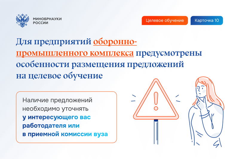 Целевое обучение – это форма обучения, при которой абитуриент после зачисления в университет заключает договор со своим будущим работодателем. По этому договору студент учится бесплатно, получает стипендию, а также может претендовать на дополнительные меры поддержки от будущего работодателя (например, возмещение расходов на проезд, предоставление жилья, оплата питания и др.).