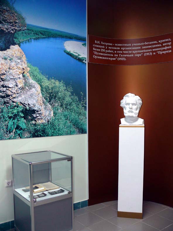 В музейном зале. Бюст В.Н. Хитрово – основателя заповедника
