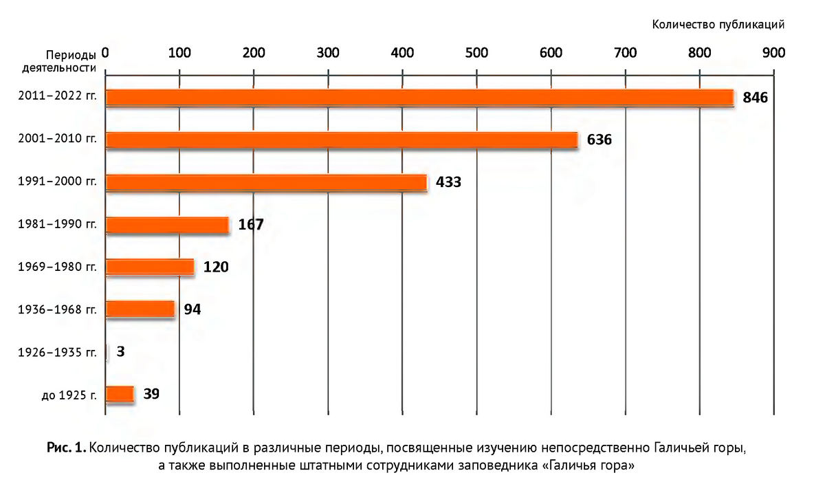 В конце XIX - начале XX веков на Галичьей горе проводили исследования многие известные ученые. Среди них академики С.Г. Навашин и Д.Н. Анучин, профессора С.И. Ростовцев, Н.В. Цингер, А.В. Флеров, Л.Г. Раменский, В.Н. Хитрово, Б.М. Козо-Полянский... О Галичьей горе писали в те годы П.П. Семенов-Тян-Шанский, И.П. Бородин, В.Н. Сукачев, А.А. Еленкин, В.И. Талиев.