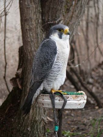 В питомнике содержатся многие виды хищных птиц. Сокол балобан.