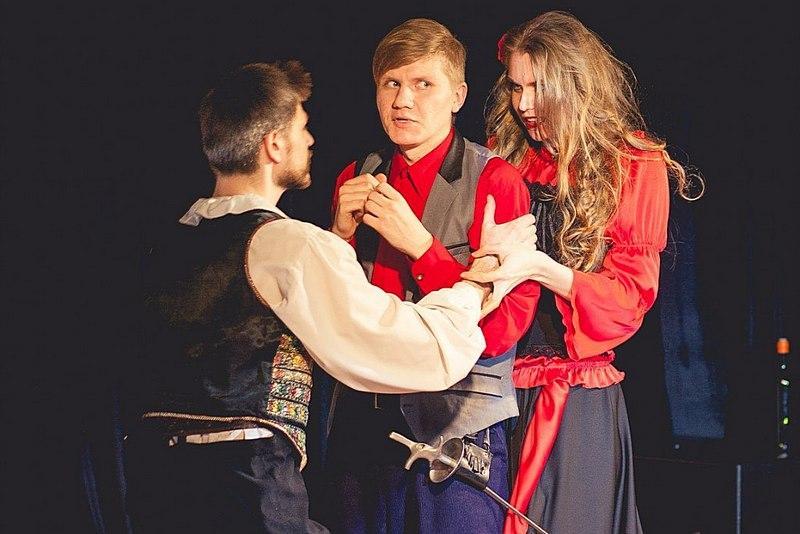 At the end of April in the railwaymen’s community center in Voronezh «The Blue Horse» theatre school showed its play «The Blue Horse”s jokes» as a part of the charity concert «Way of kindness». The drama group predominantly consists of students, alumn and post-graduates of VSU. The performance presents related episodes from works of Pierre Beaumarchais, Shakespeare, Moliere and other classics of literature. In spite of changes in the cultural context, vivid and evocative acting revealed the main idea – love is similar to a battle.