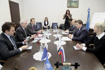 On 4th December, a meeting between the University administration represented by the Rector Dmitri Endovitsky, Vice-Rector for Economic Development and International Cooperation Oleg Belenov and Ambassador, Head of the EU Delegation to Russia, his Excellency Vygaudas Ušackas, Head of the EU-Russian Cooperation Programme, the EU Delegation to Russia, Mr. Nicola Scaramuzzo and Counsellor of the political section of the EU Delegation to Russia Mr. Piet Blondé, – was held in the Main Building of Voronezh State University.