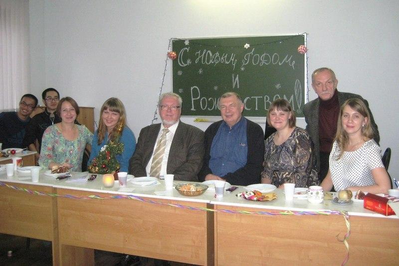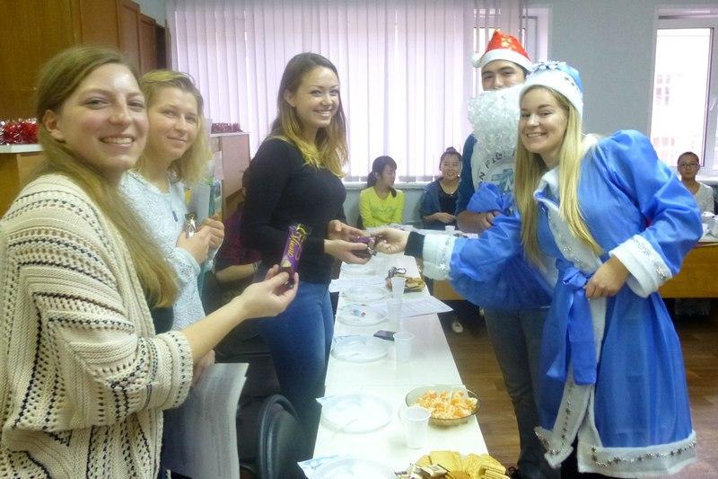 At the party, Father Frost – an American student from Baylor (Mabbit Josepf Allen) and the Snow Maiden – an Estonian student from Tartu (Joseph Johanna) handed out small presents to those interns and teachers who sang songs, recited poems, or took part in acting out part of "The Cherry Orchard" a play by Anton Chekhov. The atmosphere at the party was truly warm and friendly, and the students expressed words of gratitude to the university and their teachers.