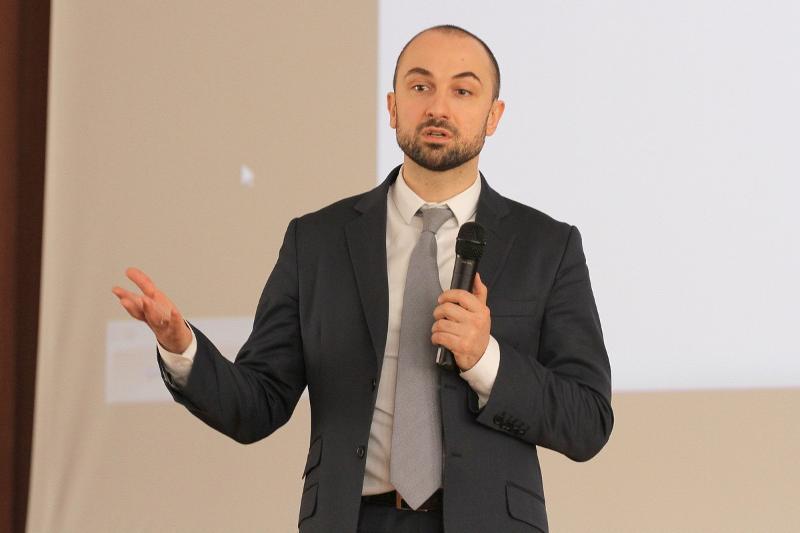 The lecture was given by Sergei Kupriyanov – a universities' cooperation programmes manager of Universitetskiy Alians SAP (University Alliance SAP) for students of all faculties and journalists eager to get new skills and enhance their competitiveness in the labour market. In his presentation he told students about tendencies in the IT industry and about the world's technological trends as well as the way they influence the employment world and the lifestyle of modern society. He also explained what IT market model is and how it works and demonstrated it by the example of SAP ecosystem – how market players interact and what the career possibilities for young specialists are.