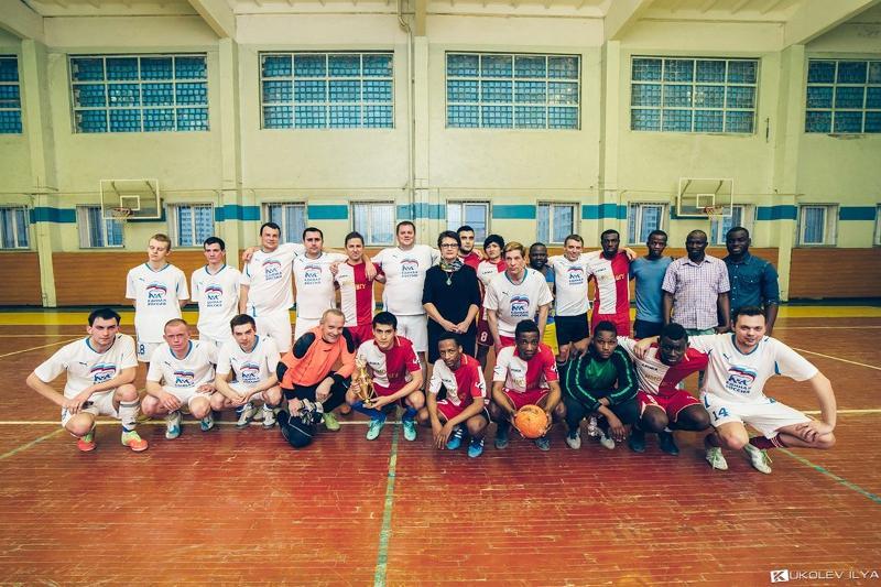 The game resulted with the score 11:4 for the team of the International Education Department of Voronezh State University. The winners were awarded with a cup. But the members of Voronezh Regional Duma do not give up. The team captain, the Deputy Chairmen of the Voronezh Regional Duma Education, Culture and Youth Policy Committee, Aleksandr Kucherenko invited the foreigners to play a series of matches on the open pitch at the stadium Chaika. The VSU team accepted the offer with much pleasure.