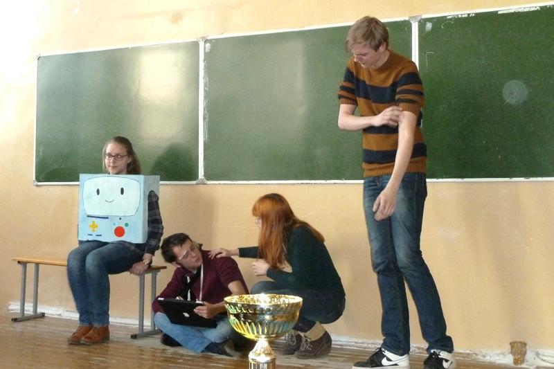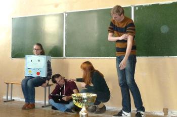 The first prize as well as a cake and a challenge cup was awarded to third year students of the Faculty of Applied Mathematics, Informatics and Mechanics. Other teams received tasty presents and the best performers and connoisseurs of the English language got special awards. The participants of the event had lots of fun!