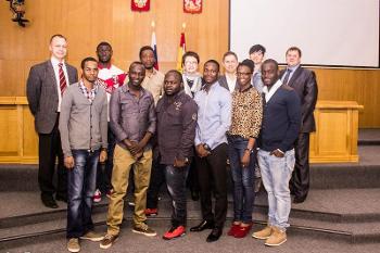 On 24 April, leaders of Voronezh State University foreign student’s communities and VSU International Education's Department football team members visited the Voronezh State Duma by invitation of a Duma member Alexadr Kucherencko.