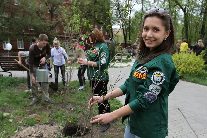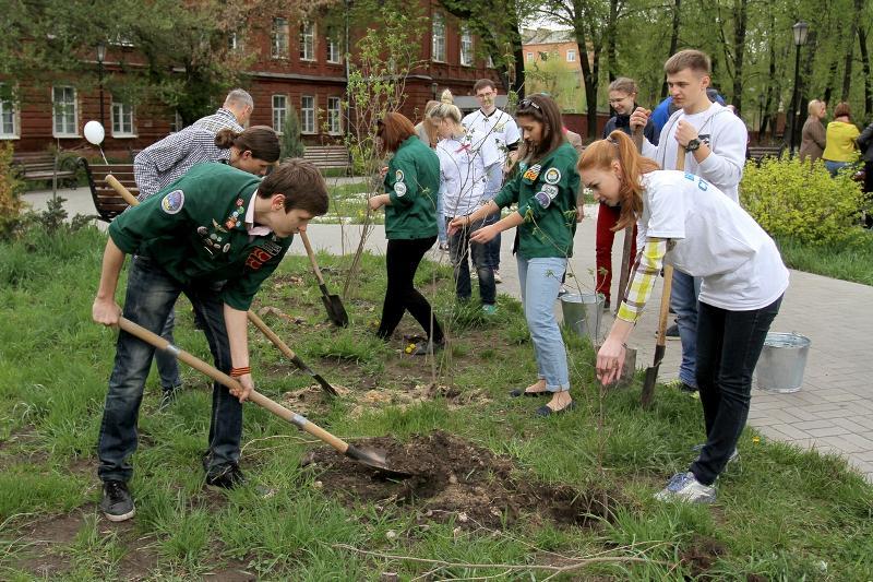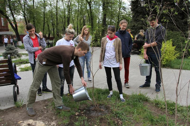 Students of Voronezh State University were actively engaged in the event. Representatives of VSU Student Council planted 50 lilac bushes in front of dormitory №7 and together with students from the VSU social team IndiGo planted 30 bushes in front of university building № 3.