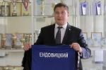 Then the VSU Rector and the project supervisor, the chairperson of the VSU Students' Scientific Society Mikhail Frolov, presented the coaches and players with a new sport's uniform with the logo of Voronezh State University. In his turn, Vladimir Nemtsov, the team captain, presented on behalf of the team, a personal uniform and a hand ball with autographs of the players to Dmitry Endovitsky.