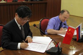 On 7 June, a meeting between the university administration and the delegation of Hebei Academy of Agriculture and Forestry Sciences (Hebei, China) headed by the Rector Wang Haibo was held in the Conference Hall of the main building of Voronezh State University. The meeting was concluded by signing the cooperation agreement.