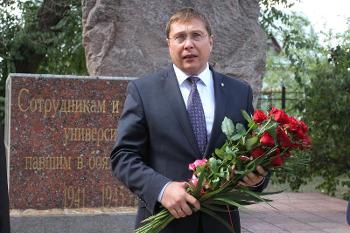 In the morning the University Rector professor Dmitry Endovitsky, Vice Rector for Research and Informatisation Vasiliy Popov, and a Rector's councillor Vladimir Listengarten visited the park of the main building of Voronezh State University and laid flowers at the memorial dedicated to the university staff and students who died in the Great Patriotic War.