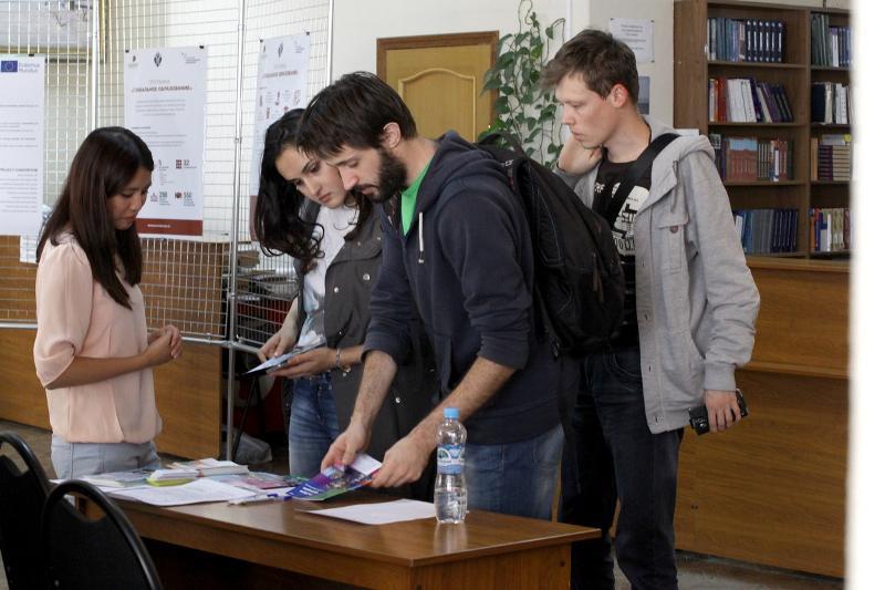 On 17th September, a fair of student mobility programmes organised by the Office for International Student Programmes of the International Cooperation Department was held in the reading hall of the university main building. The fair attracted a big audience – over 100 students from various faculties of the university came to get information about academic mobility programmes and possibilities of receiving postgraduate education abroad.