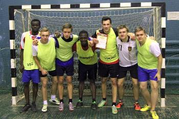 On October 5, an Indoor soccer tournament for first-year students was held at the gym of the Building № 6 of Voronezh State University. The competing teams represented eight faculties: the Faculty of Geography, Geoecology and Tourism, the Faculty of History, the Faculty of Computer Sciences, the Faculty of Mathematics, the Faculty of Romance and Germanic Philology, the Faculty of Applied Mathematics, Informatics and Mechanics, the Faculty of Economics, and the Faculty of Law.