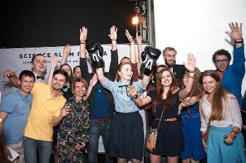 Science Slam is a new form of science communication. Young scientists present their own scientific research work in a given time frame of 10 minutes in front of a non-expert audience that judge the performance. Applause is measured with the use of a sound level meter. One such Slam takes about two hours with a twenty-minute break.