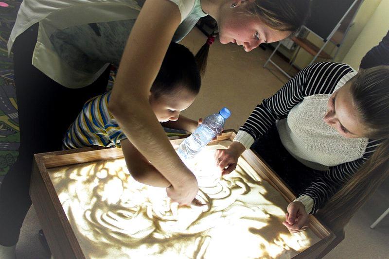 The Centre's specialists, Galina Shvetsova and Tatiana Shalneva, teach school pupils, students and other volunteers to communicate with children who have different developmental conditions. Students were looking after the children for two hours, while their parents were talking to the specialists.