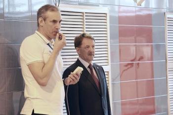 The Governor of the Voronezh Region Aleksey Gordeev congratulated the guests on the grand opening of the swimming pool and noted the concerted efforts made by the government authorities and the University during the pool's construction. In addition, on behalf of the Government of the Voronezh Region Aleksey Gordeev presented the Rector of Voronezh State University with a certificate for 500 000 roubles to buy extra sport equipment for the gym hall in the VSU swimming pool complex.