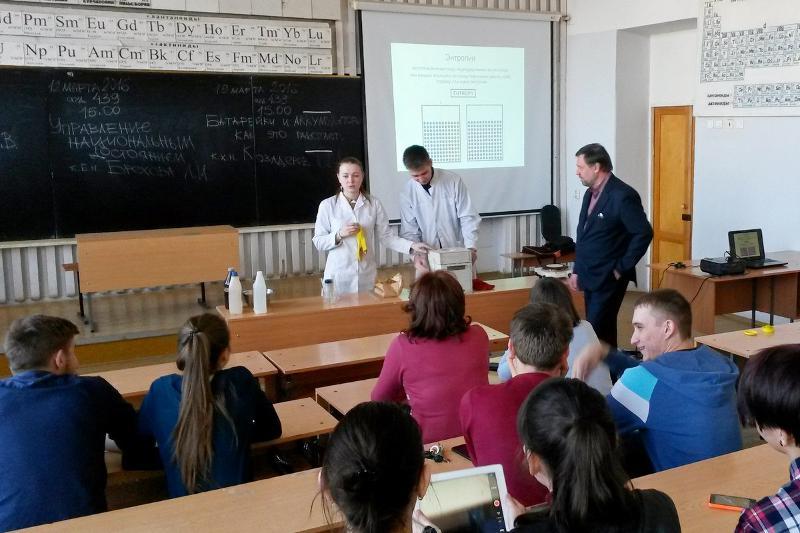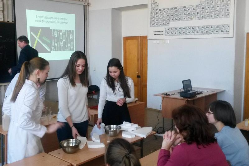 The Faculty of Chemistry continues a cycle of lectures for schoolchildren of forms 8–11. On 20th February, the Head of the Department of High Molecular Compounds and Colloids Alexandr Shestakov told the children from regional schools and interested adults about “smart” polymers. The audience learnt that these materials can be solid and liquid, crack-sensitive and elastic at the same time, their structure and properties changing depending on their purpose. The unique properties of polymers make it possible to solve many problems in such industries as oil production and pharmacology.