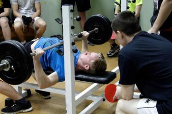 On February 29th, a bench press tournament was held at the gym of Building № 9 of Voronezh State University within the framework of the University Olympics. 9 student teams – from the Faculty of Physics, the Faculty of Law, the Faculty of Mathematics, the Faculty of Applied Mathematics and Mechanics, the Faculty of Romance and Germanic Philology, the Faculty of Geography, Geoecology and Tourism, the Faculty of Economics, the Faculty of Chemistry, and the Faculty of International Relations, – took part in the tournament.