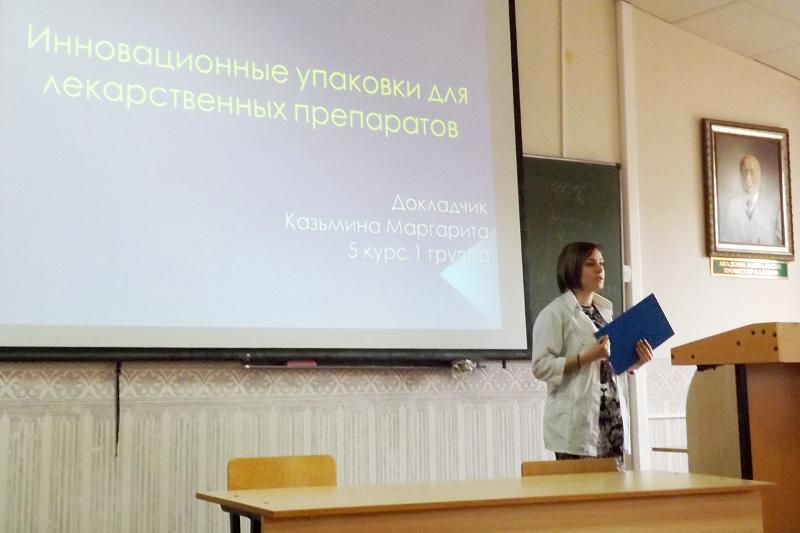 The jury gave the first prize to two fifth-year students of the Faculty of Pharmaceutics: Margarita Kazmina for the project "Innovative packaging for medicine", and Yulia Biryukova and her project Developing a computer system for prescription forms processing in a pharmacy".