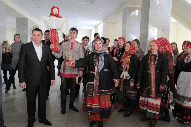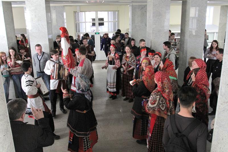 On 11th March, staff, lecturers and students of Voronezh State University celebrated the Maslenitsa festival. The sparkling performance of VSU folk music group Terem (under leadership of Galina Khristova) and a folk music group of the Department of Geography, Geoecology and Tourism Lel (under leadership of Mikhail Oleinikov) created a carnival atmosphere.