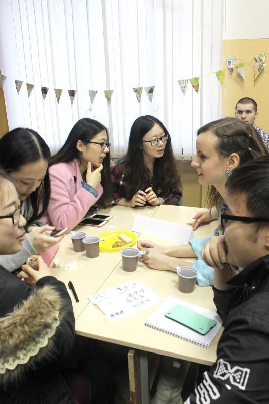 The participants divided into the following groups: English and Russian table, German and Russian table, Spanish and Russian table, Portuguese and Russian table, and Chinese and Russian table. At first the students spoke a foreign language and then – Russian. It should be mentioned that some participants used several languages.