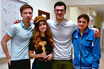 Finally the first prize was awarded to the Faculty of Mathematics team who got 22 points out of a possible 28. The team consisted of a first year postgraduate student, international master Sergei Chekhov, a third year student, FIDE Master Alexandr Zhurikhin, a third year student, candidate master of sports Andrei Aminov, a first year student, candidate master of sports Roman Rodionov, and a first year student Anna Solomakhina.