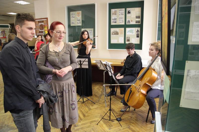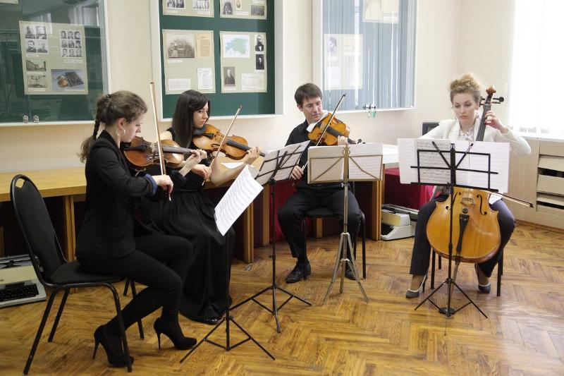The opening of the exhibition was accompanied with performances by postgraduate students and teachers of Voronezh State Art Institute who played pieces by Mikhail Stchurik, Dmitry Shostakovich, and Samuel Barber.