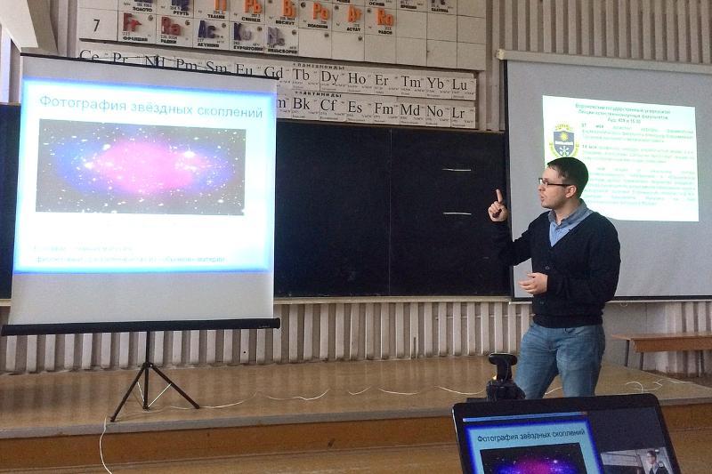 On 16 April, Voronezh State University presented another lecture within the project “Saturday University”. Dmitry Lubashevsky, a lecturer of the Department of Nuclear Physics of the Faculty of Physics talked about "Realities and sensations of the large hadron collider". Traditionally, the audience included Voronezh schoolchildren who came to the main university building of Voronezh State University and children from Rossosh who gathered in front of a screen located in the ICT room of school № 9 in Rossosh.