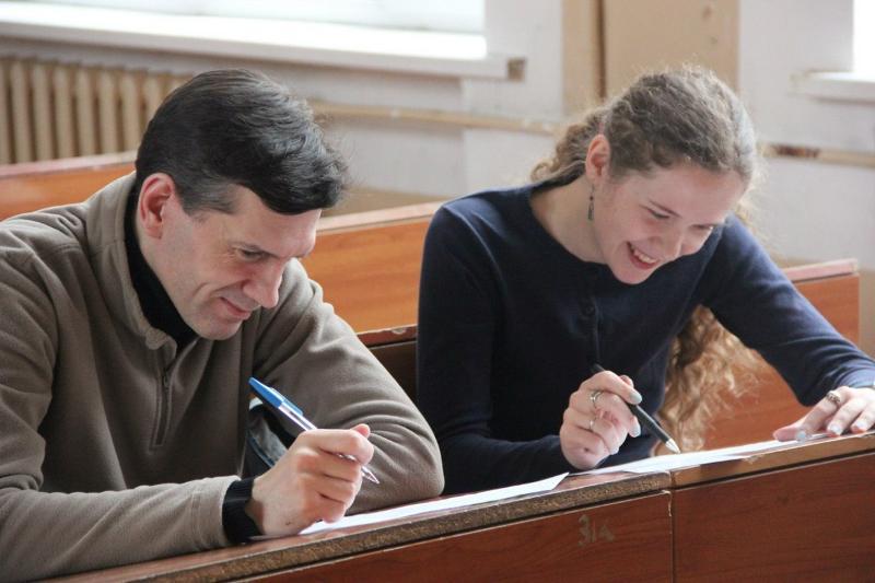 Voronezh State University took an active part in the event. The Faculty of Philology organised a two-month course for those who wanted to prepare for the dictation. Lecturers, postgraduate, and undergraduate students read out the dictation and checked the works. About 200 people came to the university to write the dictation. This year the guest speaker was the Head of the Administration of the State Road Traffic Safety Inspection of the Voronezh Regional Department of the Russian Ministry of the Interior, police lieutenant colonel Yevgeny Shatalov. He read out the dictation in the main building of Voronezh State University.